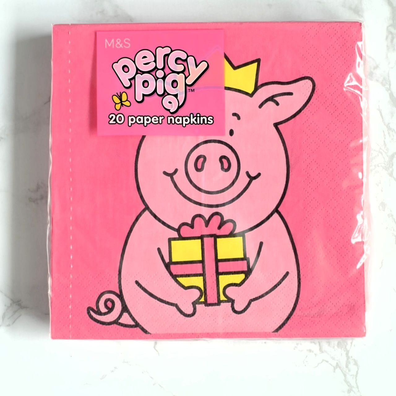 イギリスの人気キャラクター「パーシーピッグ」が描かれたM&Sのペーパーナプキン。
