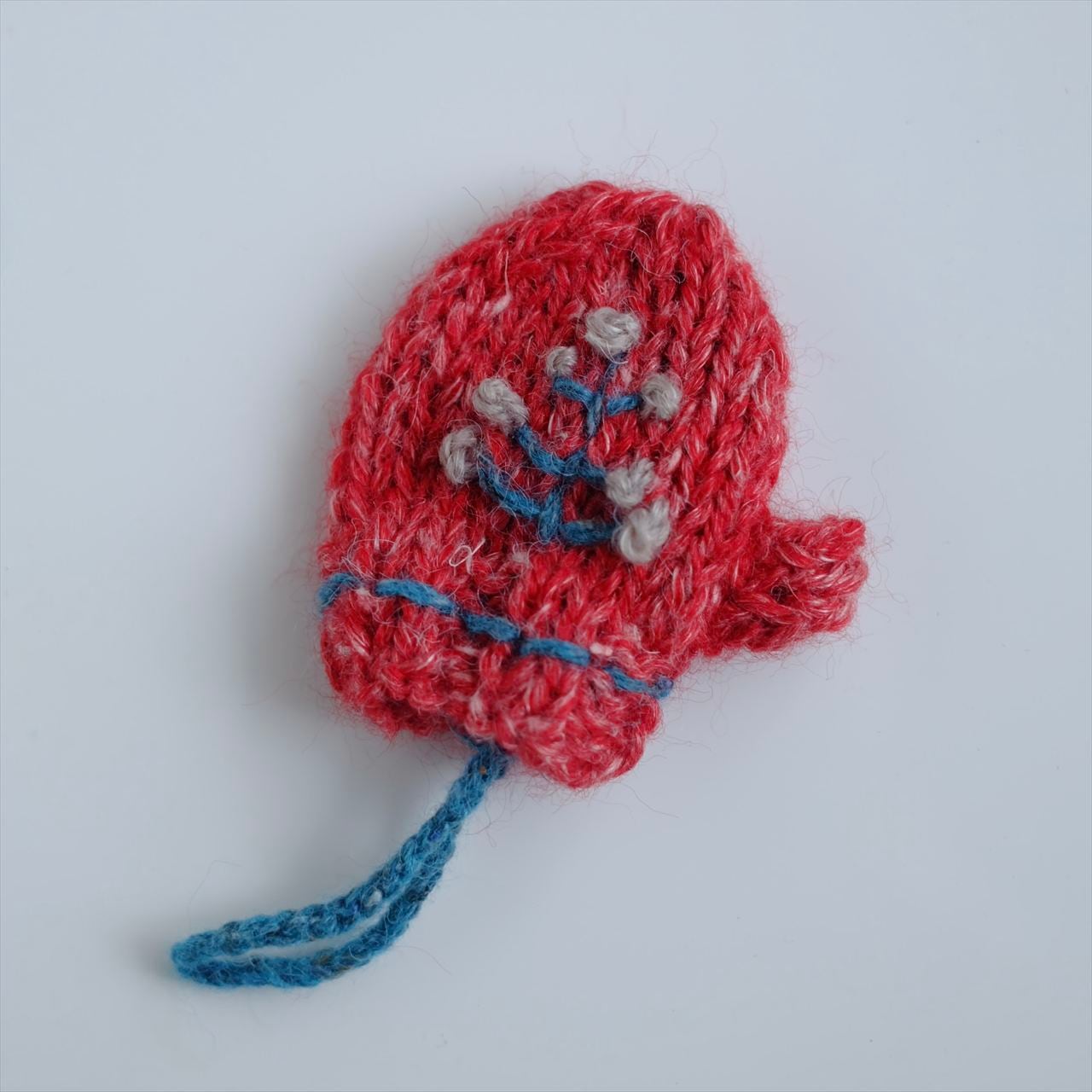チャームにしてもいいし、オーナメントにもなる手編みのミニミニミトンです